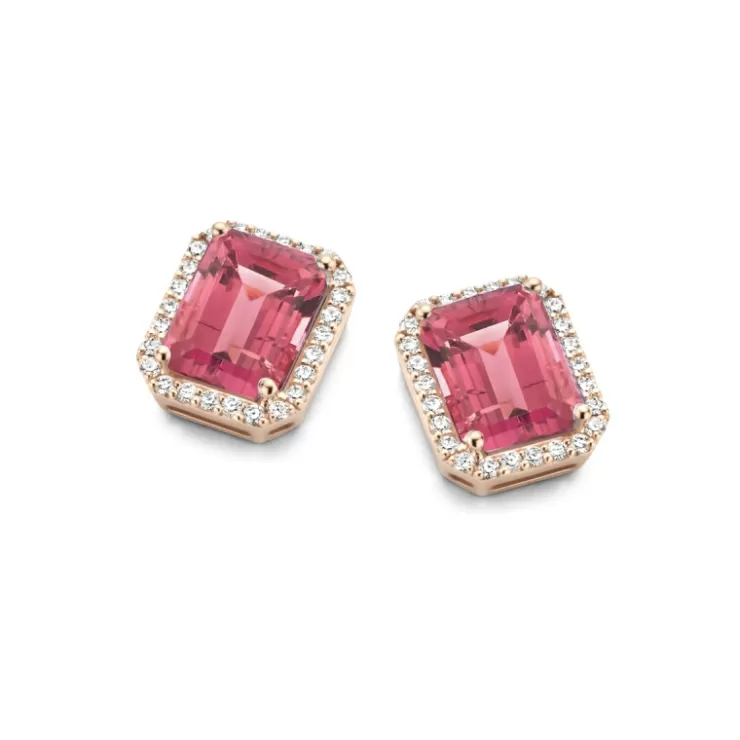 Etna earrings in 18K rose gold with pink tourmaline and diamonds.