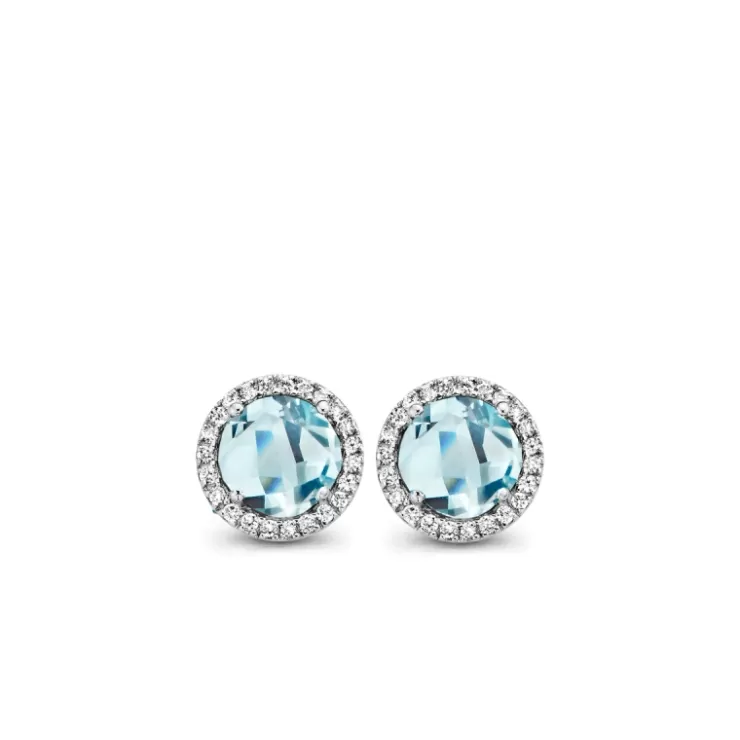 Etna earrings in 18K white gold with Sky Blue topaz and diamonds.