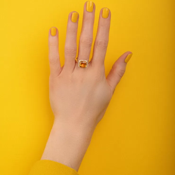 Etna ring in 18K yellow gold with orange citrine and diamonds.
