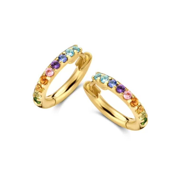 Ischia Basics creoles in 18K yellow gold with precious stones.