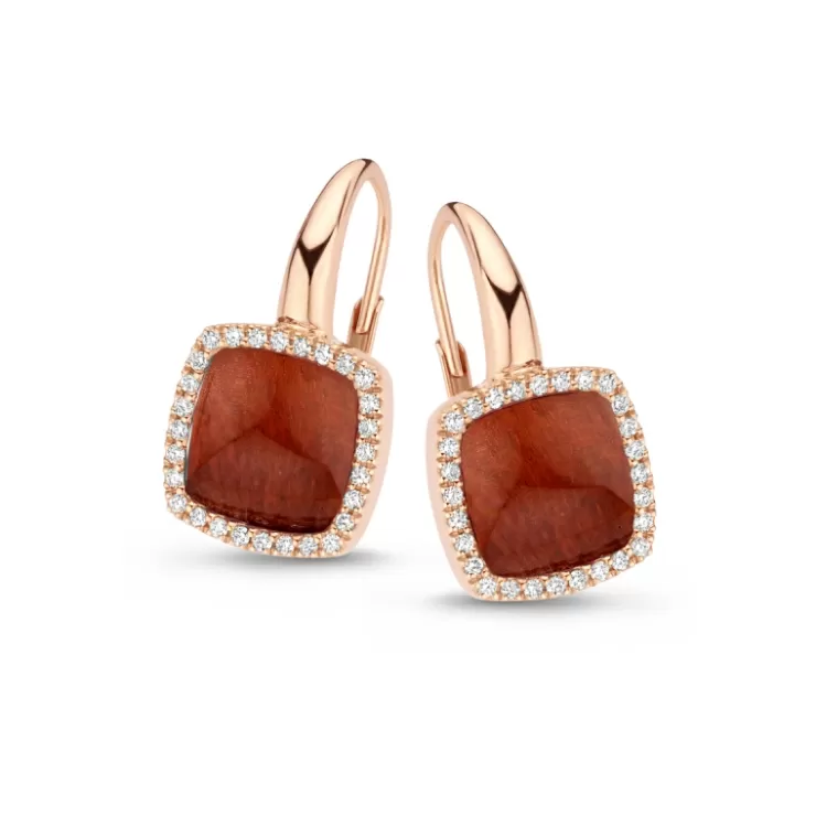 Pantelleria earrings 18 kt rose gold with quartz on red tiger eye and diamonds.
