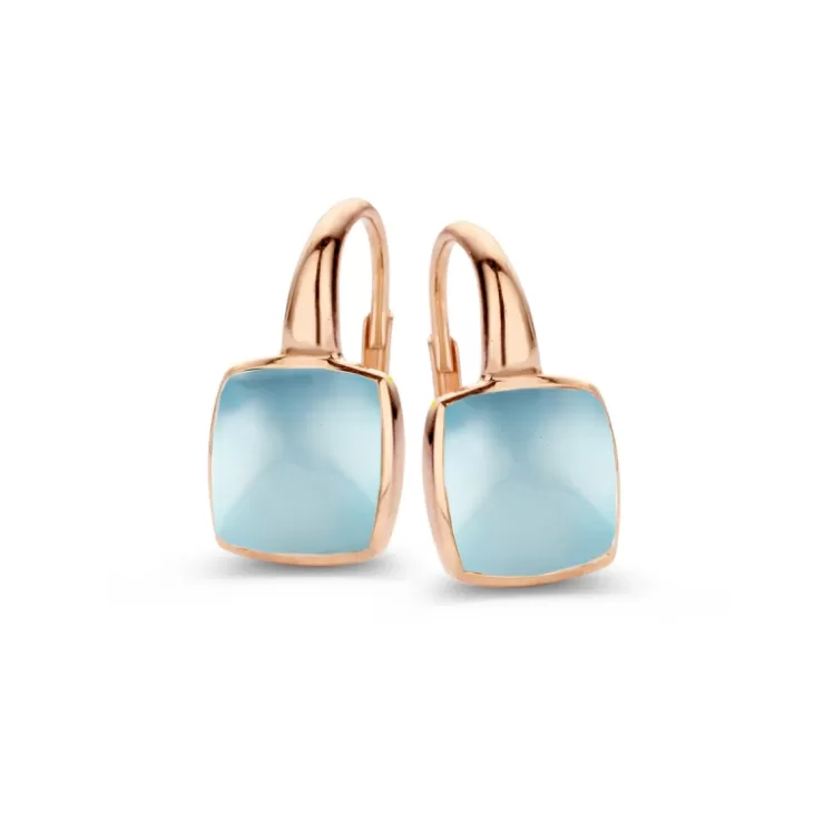 Pantelleria earrings in 18K rose gold with Sky Blue topaz on MOP.