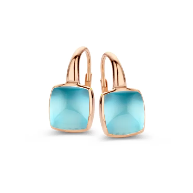 Pantelleria earrings in 18K rose gold with Swiss Blue topaz on MOP.