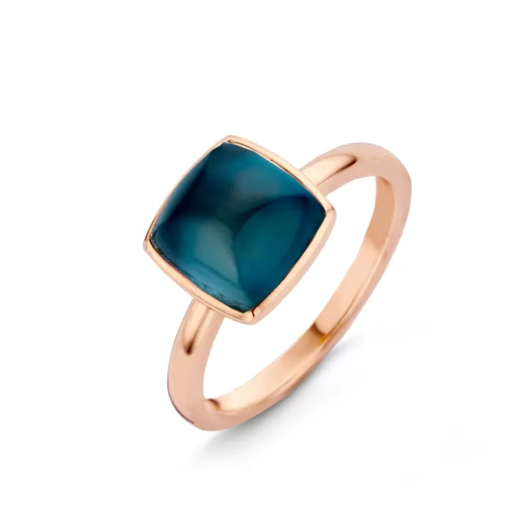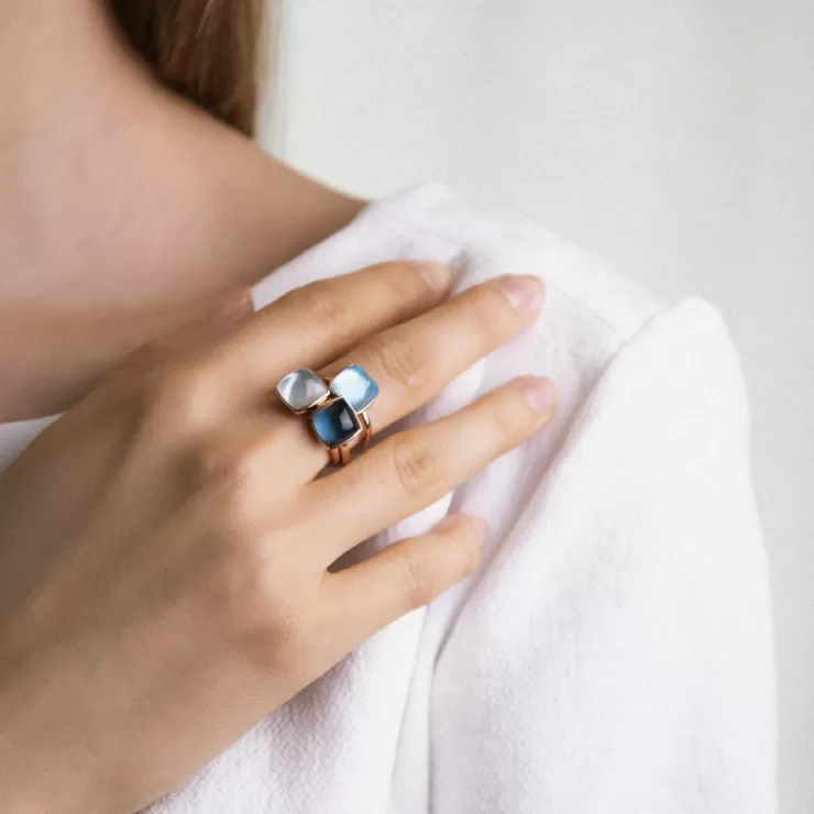 Pantelleria ring in 18K rose gold with London Blue topaz on MOP.