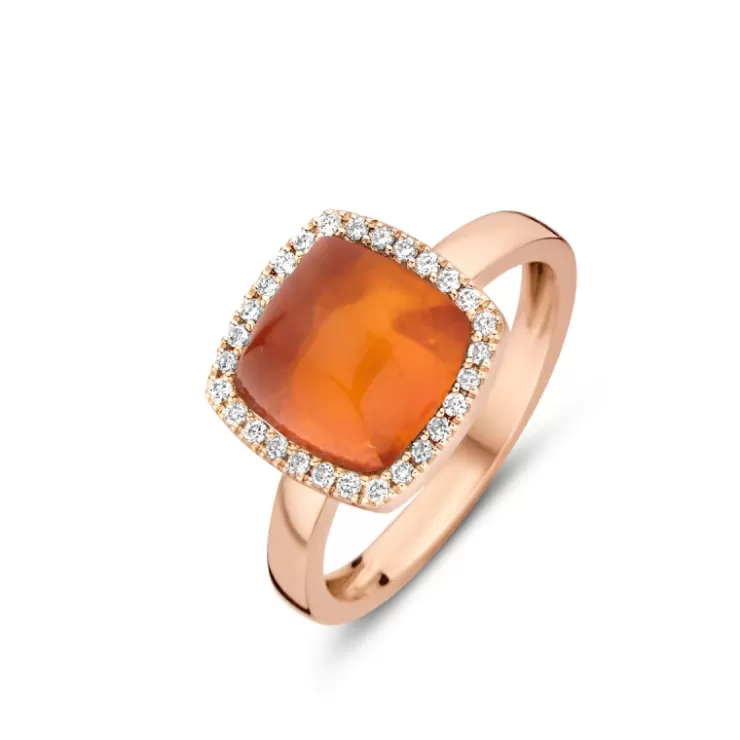 Pantelleria ring in 18 kt rose gold set with quartz on orange agate and diamonds.
