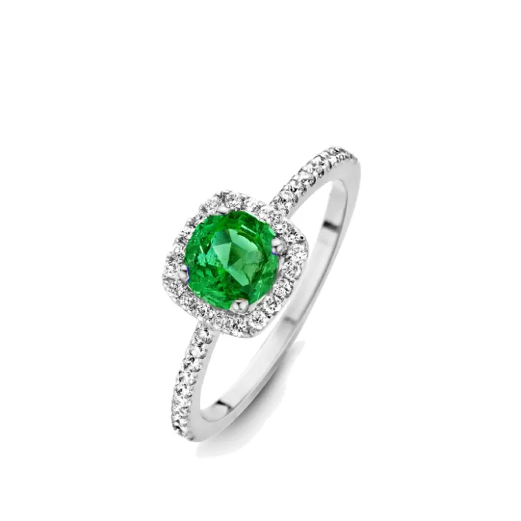 Salina ring in 18K white gold with emerald and diamonds.