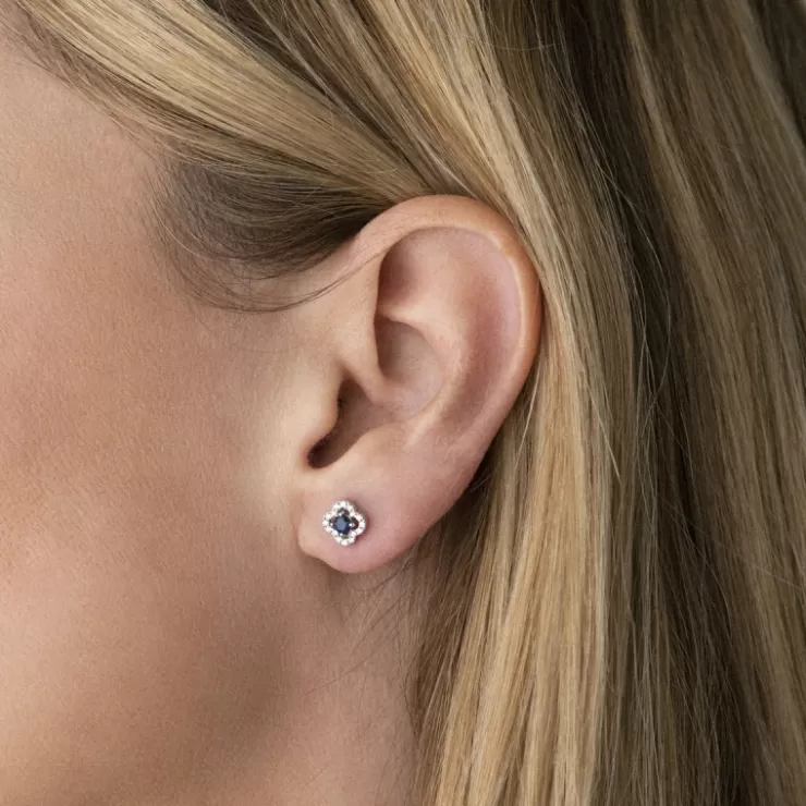 Salina earrings in 18K rose gold with blue sapphire and diamonds.