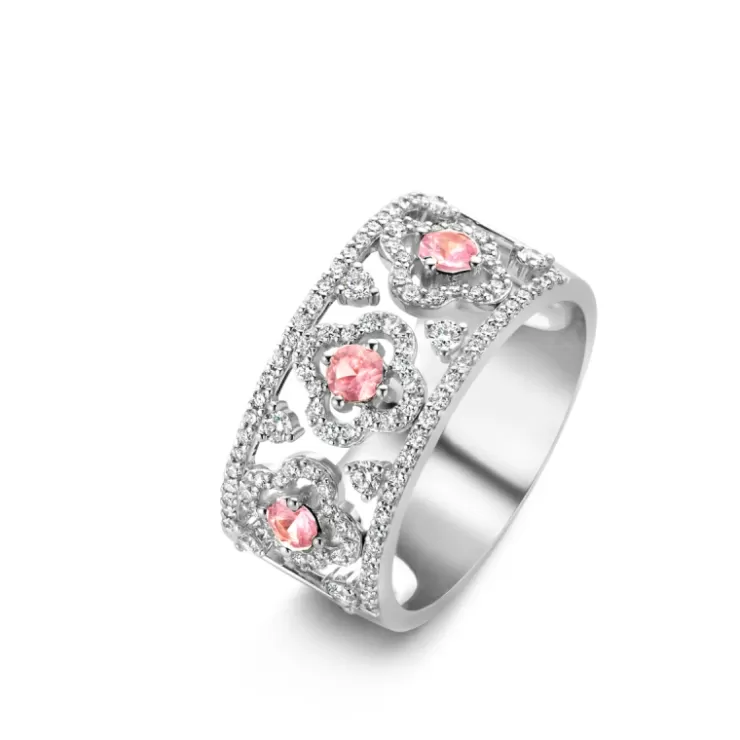 Salina ring in 18K white gold with pink sapphire and diamonds.