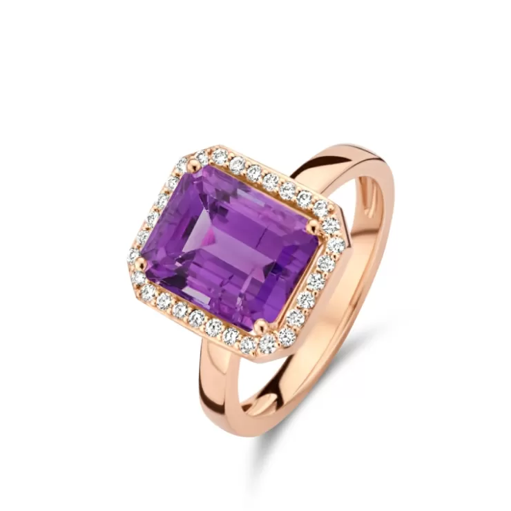 Etna ring in 18K rose gold with amethyst and diamonds.