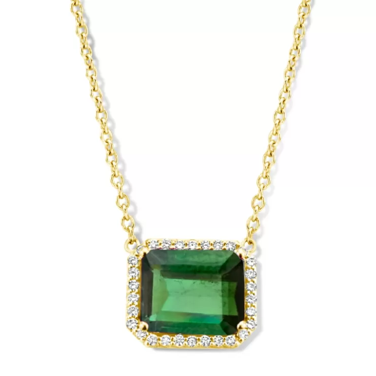 Etna necklace in 18K yellow gold with green tourmaline and diamonds.