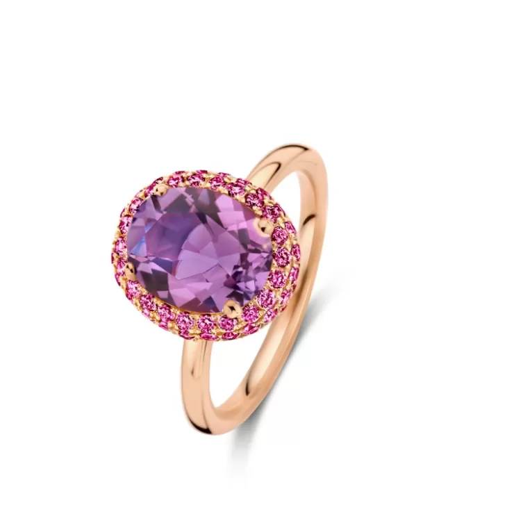 Etna ring in 18K rose gold with amethyst and pink sapphire.