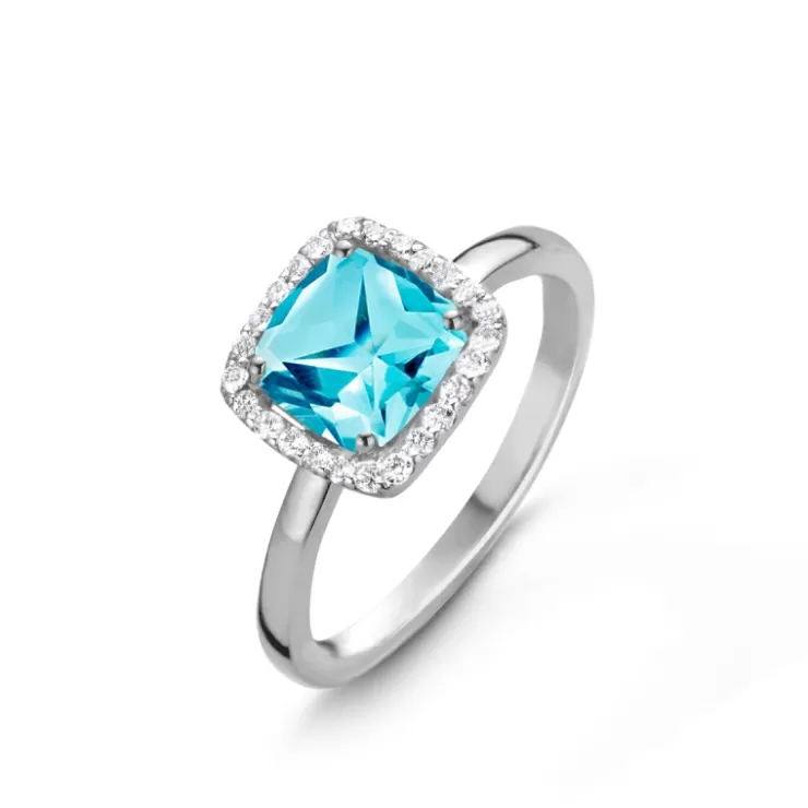 Etna ring in 18K white gold with Swiss Blue topaz and diamonds.