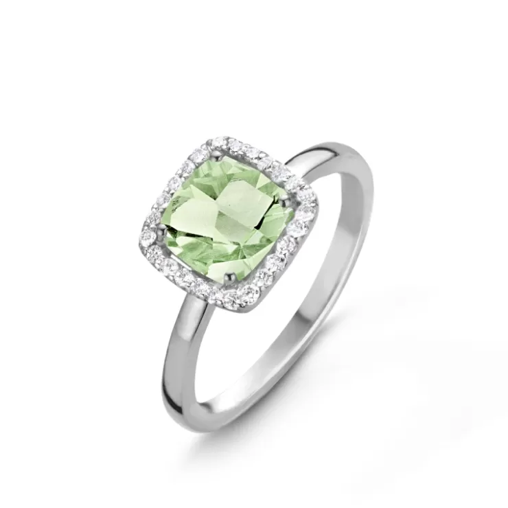 Etna ring in 18K white gold with prasiolite and diamonds.