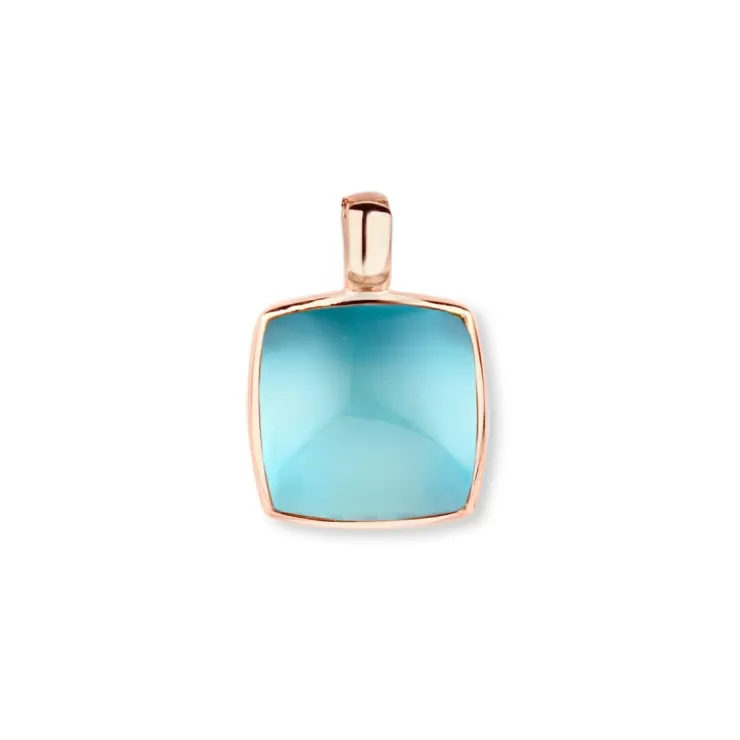 Pantelleria pendant in 18K rose gold with Swiss Blue topaz on MOP.