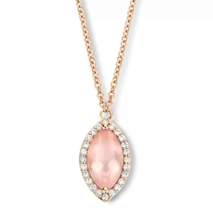 Etna necklace in 18K rose gold with pink quartz and diamonds.