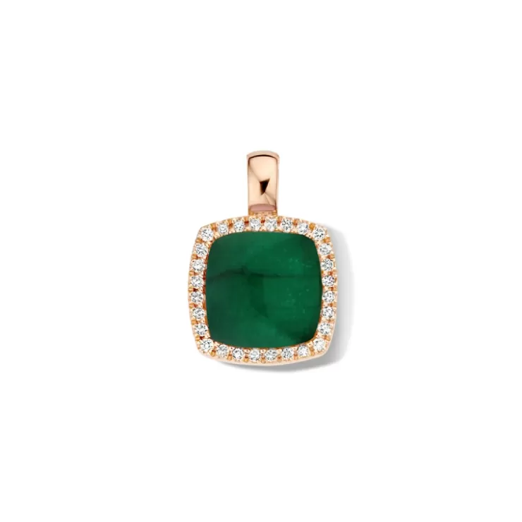 Pantelleria pendant 18 kt rose gold with quartz and emerald on MOP and diamonds.