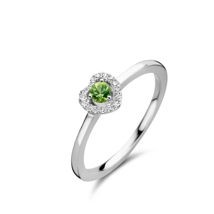 Salina ring in 18K white gold with green sapphire and diamonds.