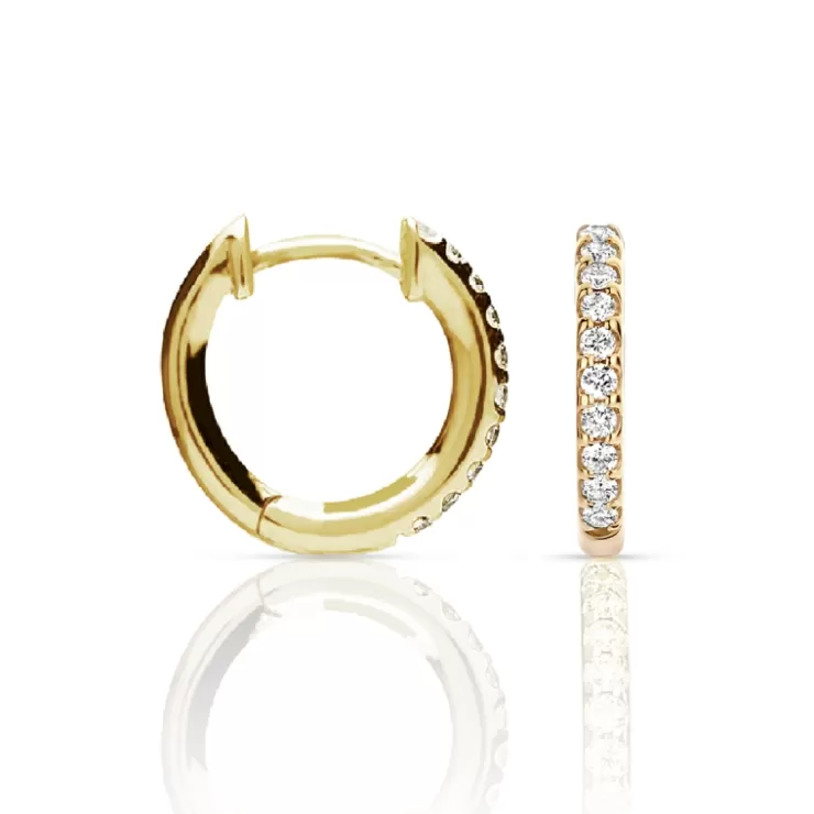 Ischia Basics creoles in 18K yellow gold with diamonds.