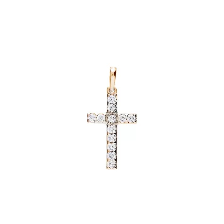 Ischia Basics cross in 18K yellow gold with diamonds.