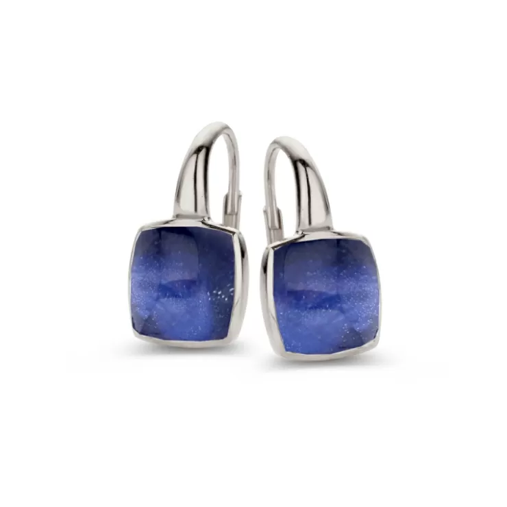 Pantelleria earrings in 18K white gold set with quartz on sodalite.