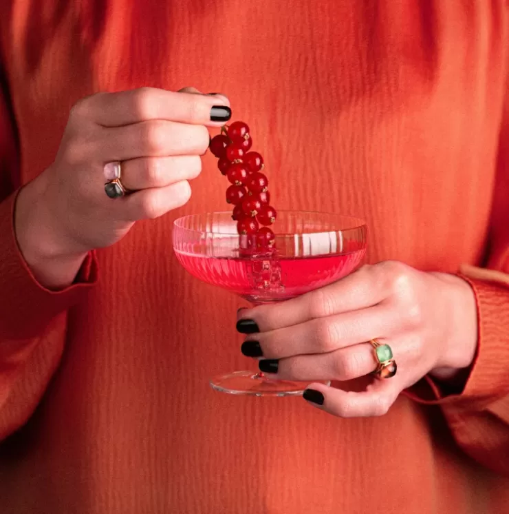 Pantelleria pink gold 750/1000 ring set with quartz on rainbow obsidian.