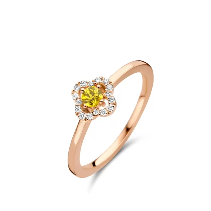 Salina ring in 18K rose gold with yellow sapphire and diamonds.