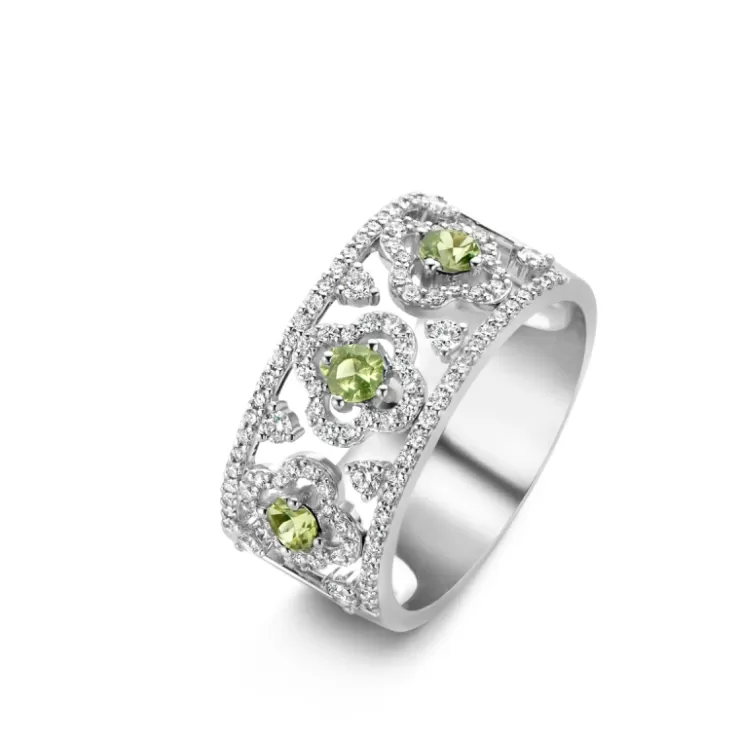 Salina ring in 18K white gold with green sapphire and diamonds.