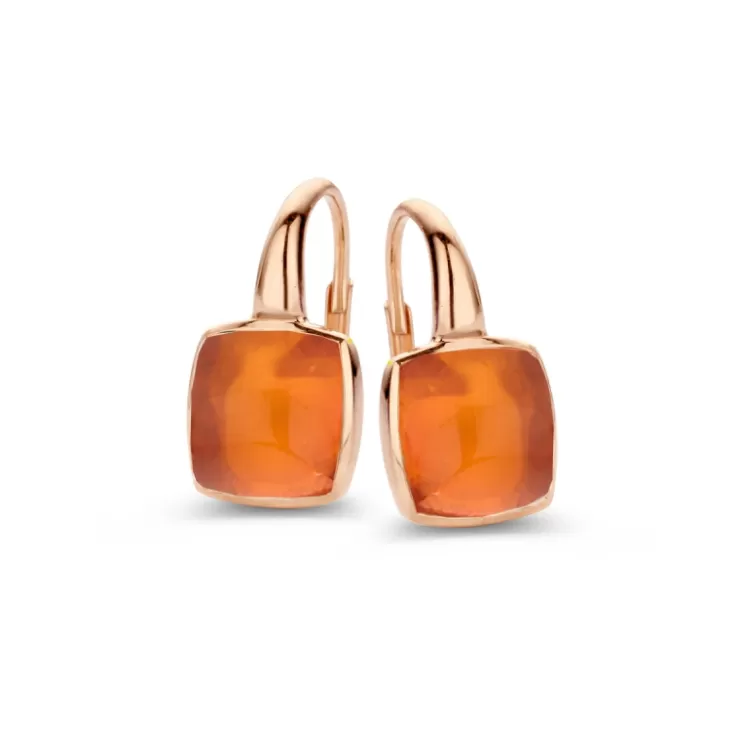 Pantelleria earrings in 18K rose gold set with quartz on orange agate.