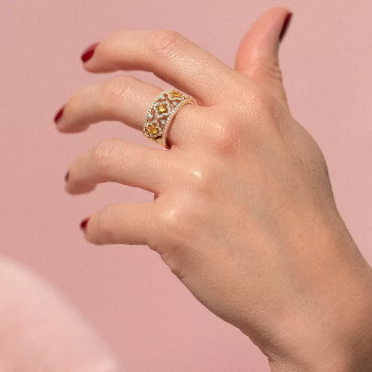 Salina ring in 18K rose gold with yellow sapphire and diamonds.