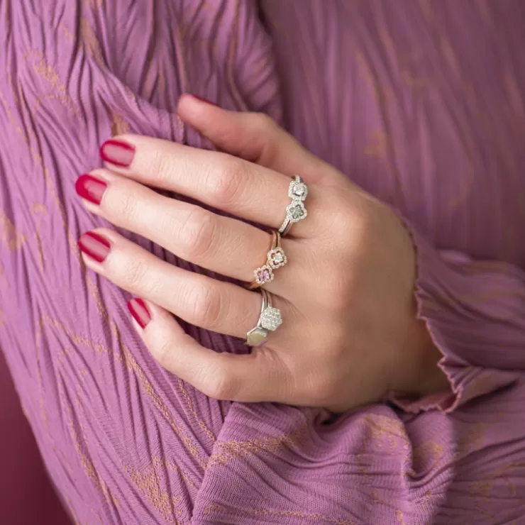Salina ring in 18K white gold with green sapphire and diamonds.