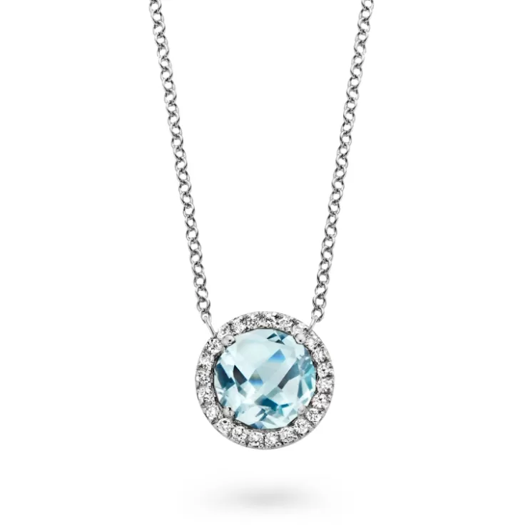 Etna necklace in 18K white gold with Sky Blue topaz and diamonds.