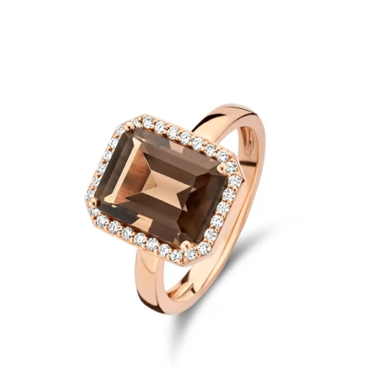 Etna ring in 18K rose gold with smokey quartz and diamonds.