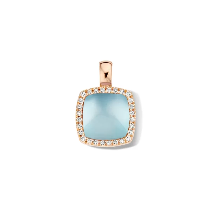 Pantelleria pendant in 18K rose gold with Sky Blue topaz on MOP and diamonds.