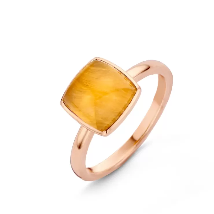 Pantelleria ring in 18K yellow gold set with quartz on yellow tiger eye.