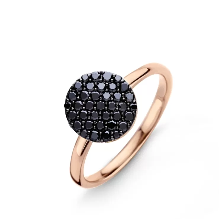 Eolo ring in 18K rose gold with black diamonds.