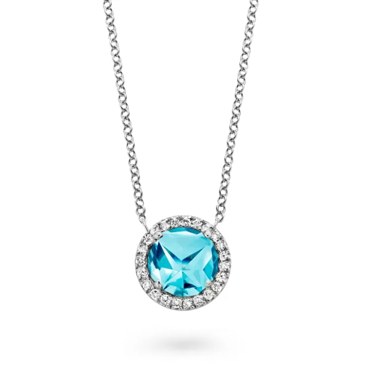 Etna necklace in 18K white gold with Swiss Blue topaz and diamonds.