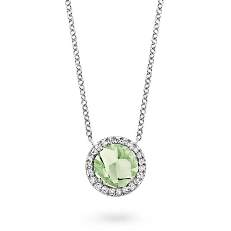 Etna necklace in 18K white gold with prasiolite and diamonds.