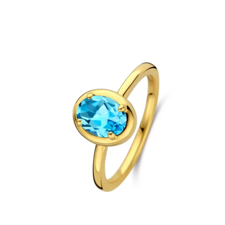 Etna ring in 18K yellow gold with Swiss Blue topaz.