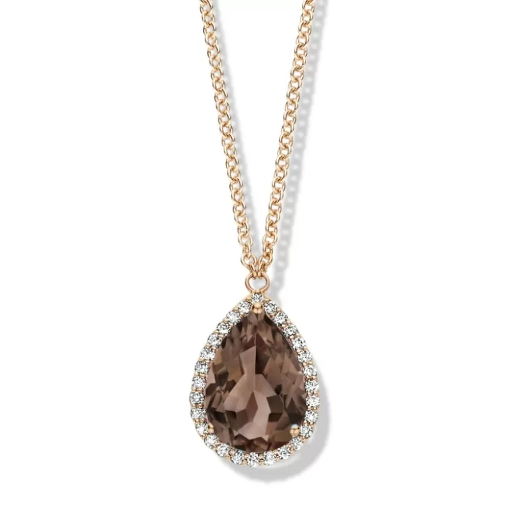 Etna necklace in 18K rose gold with smokey quartz and diamonds.