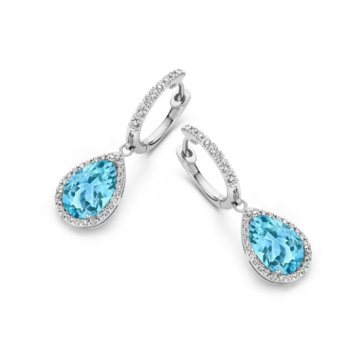 Etna earrings in 18K white gold with Swiss Blue topaz and diamonds.