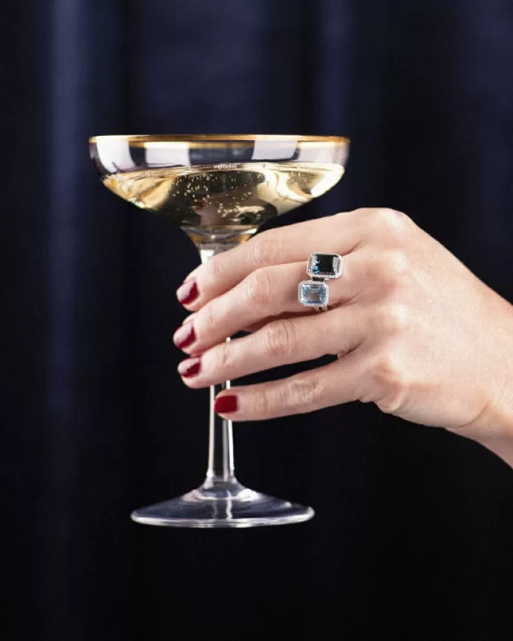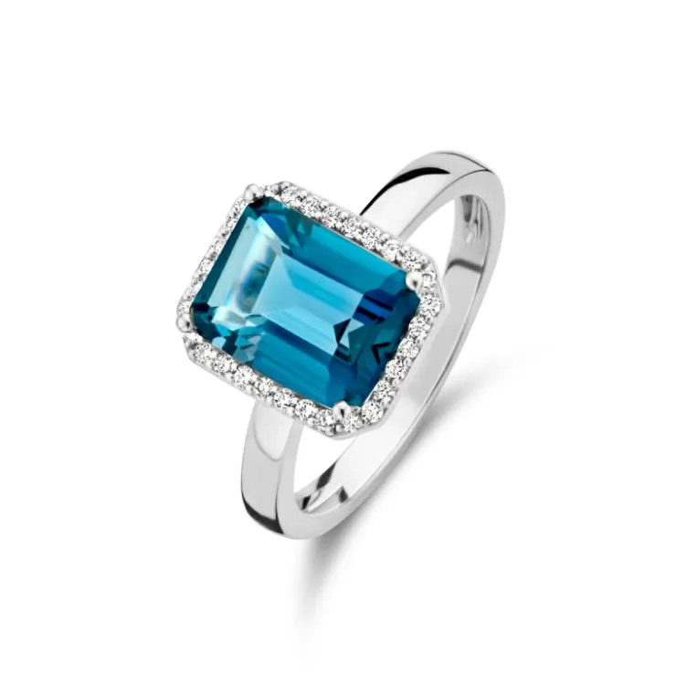 Etna ring in 18K white gold with London Blue topaz and diamonds.