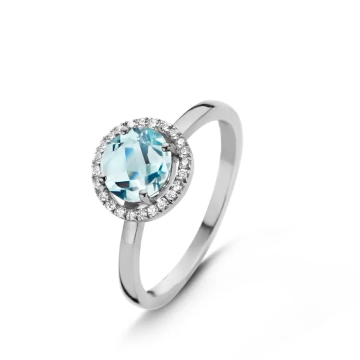 Etna ring in 18K white gold with Sky Blue topaz and diamonds.