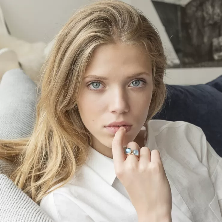 Pantelleria ring in 18K rose gold with Sky Blue topaz on MOP.