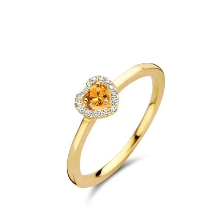 Salina ring in 18K yellow gold with orange sapphire and diamonds.