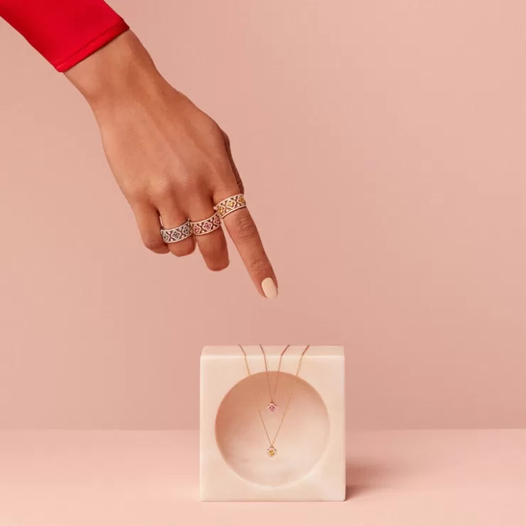 Salina necklace in 18K yellow gold with orange sapphire and diamonds.