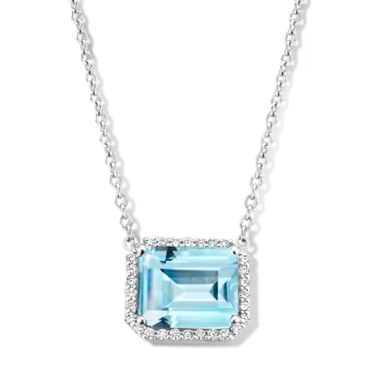 Etna necklace in 18K white gold with Sky Blue topaz and diamonds.