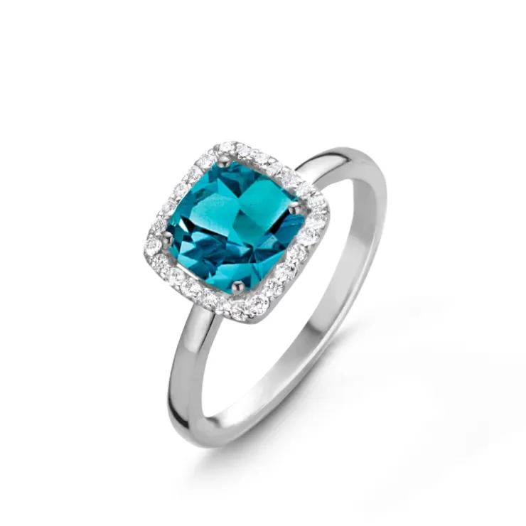 Etna ring in 18K white gold with London Blue topaz and diamonds.