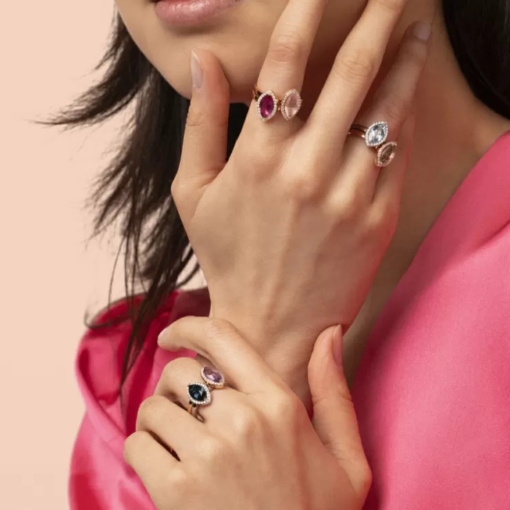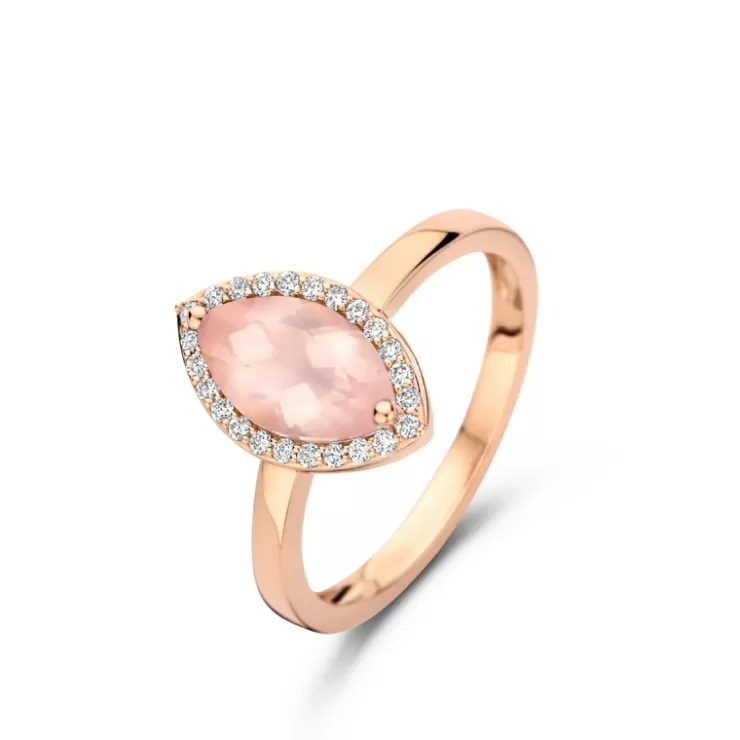 Etna ring in 18K rose gold with pink quartz and diamonds.
