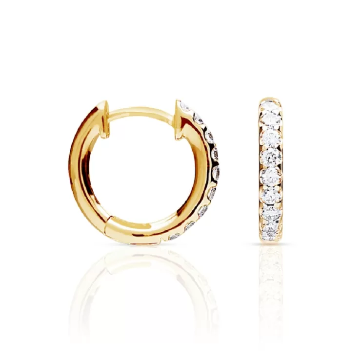 Ischia Basics creoles in 18K yellow gold with diamonds.