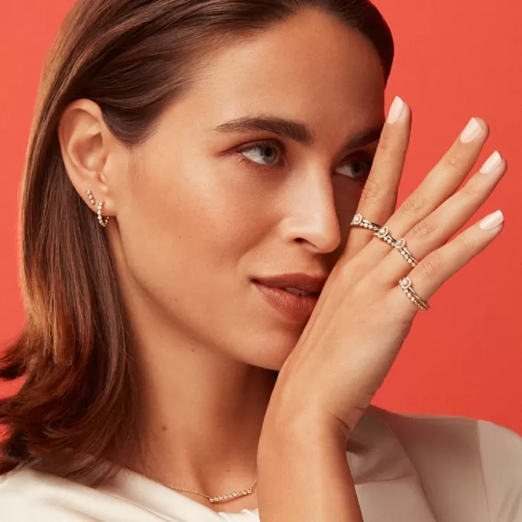 Ischia Basics creoles in 18K yellow gold with diamonds.